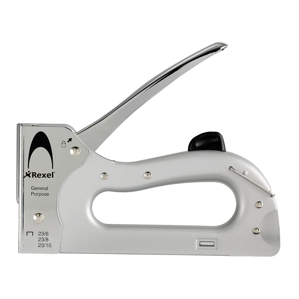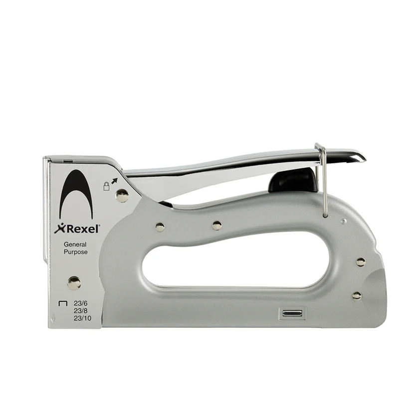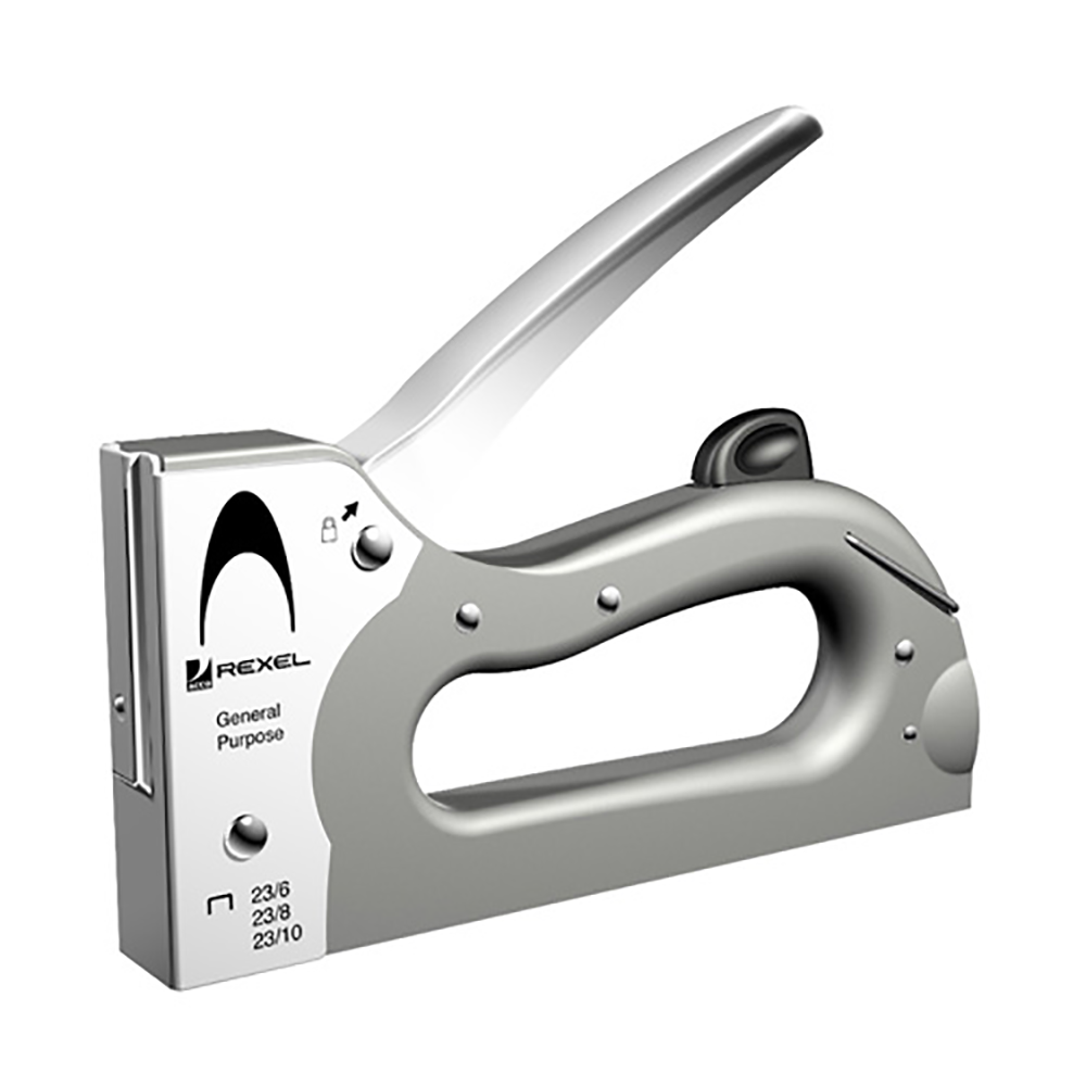 Cuando se trata de tapicerÃa, fijación de papeles, telas, las nuevas Clavadoras Rexel® son fáciles de manejar y es recargable.Altamente seguras por su sistema de bloqueo y poseen una gran precisión de remate en los objetivos que se buscan. Utiliza Corchete : Rexel® 23/6mm, 23/8mm y 23/10mm.