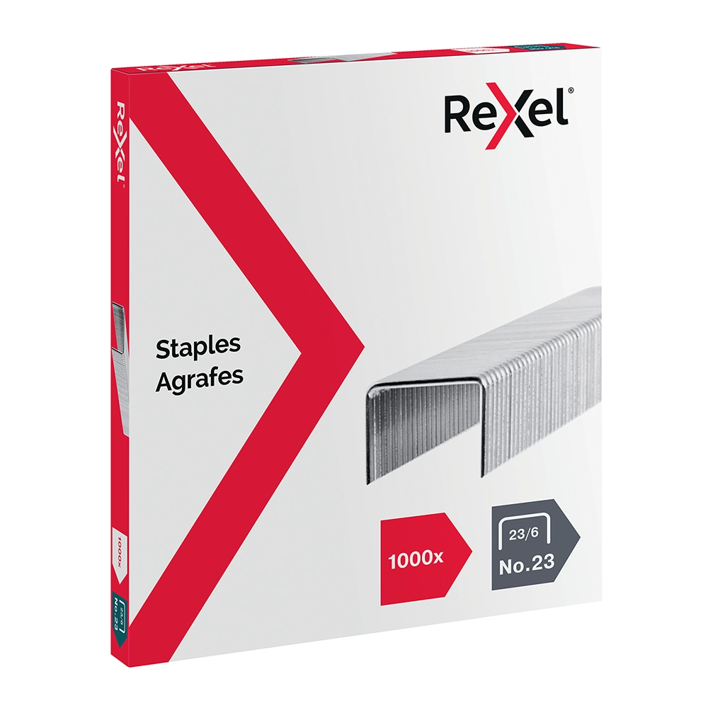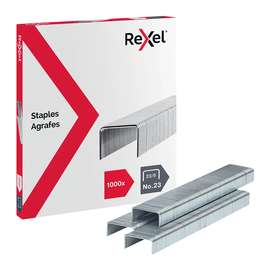 Organice sus documentos.Corchete de alambre acerado Nº23/6 mm de Rexel® ofrece un óptimo resultado de forma fácil y segura.
