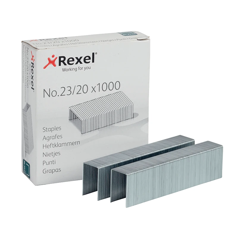 ConfÃe en la alta capacidad y durabilidad de los corchetes de uso pesado Rexel. Corchete de alambre acerado Nº 23/20 mm de Rexel® ofrece un óptimo resultado de forma fácil y segura.