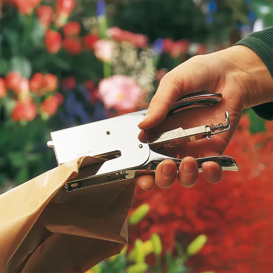 La Corchetera de tenaza más vendida en el mundo y la favorita en florerias. Atractivo diseño clásico, con yunque ajustable para grapar y clavar. Ideal para servicios postales, tiendas, oficinas y uso doméstico.