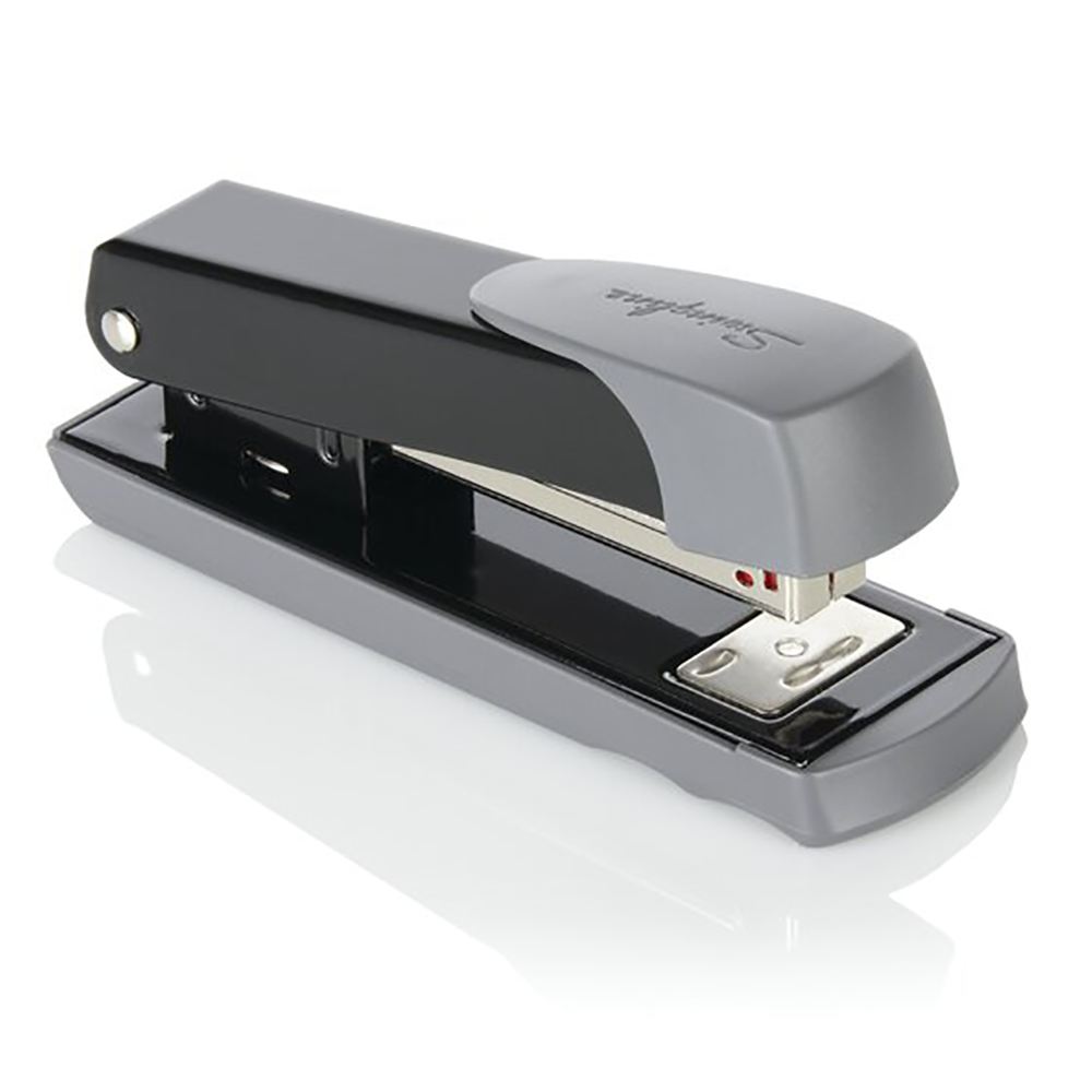 La corchetera metálica 711 de Swingline, práctica y compacta se puede utilizar en su escritorio o mientras o en cualquier espacio.