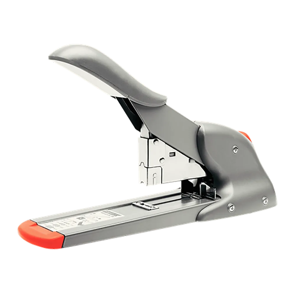Robusta corchetera de uso peado, de carga frontal, con mecanismo de palanca para una gran capacidad de corcheteado. Ideal para servicios postales y oficinas.