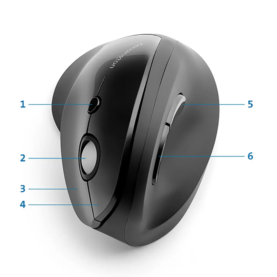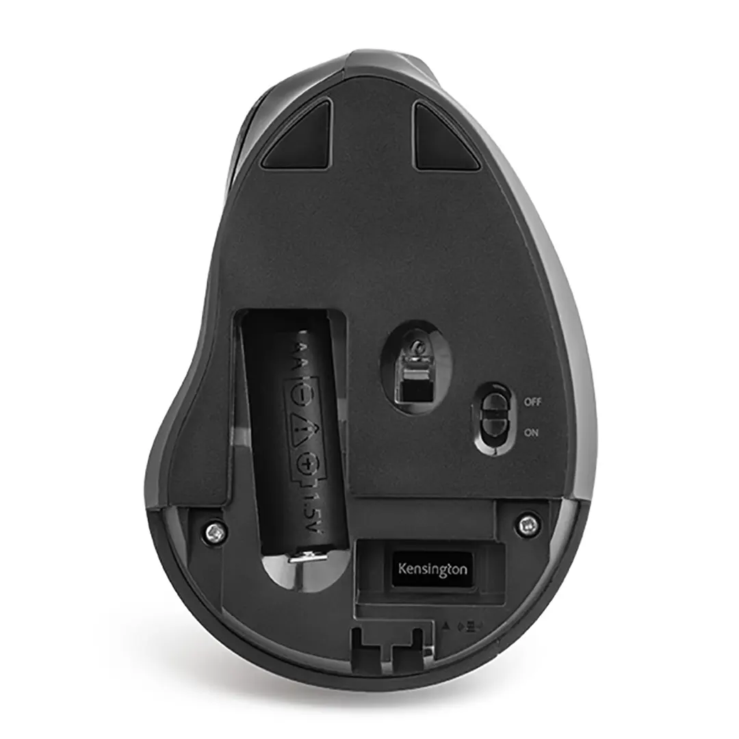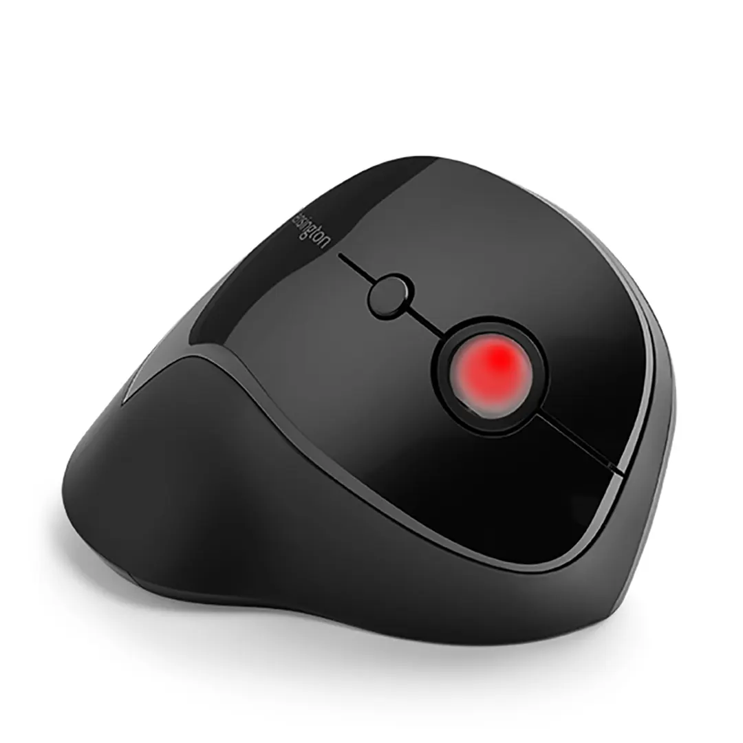 El mouse inalámbrico vertical Pro Fit® Ergo, con su posición natural de apretón de manos, mejora la postura de la muñeca para mayor comodidad.