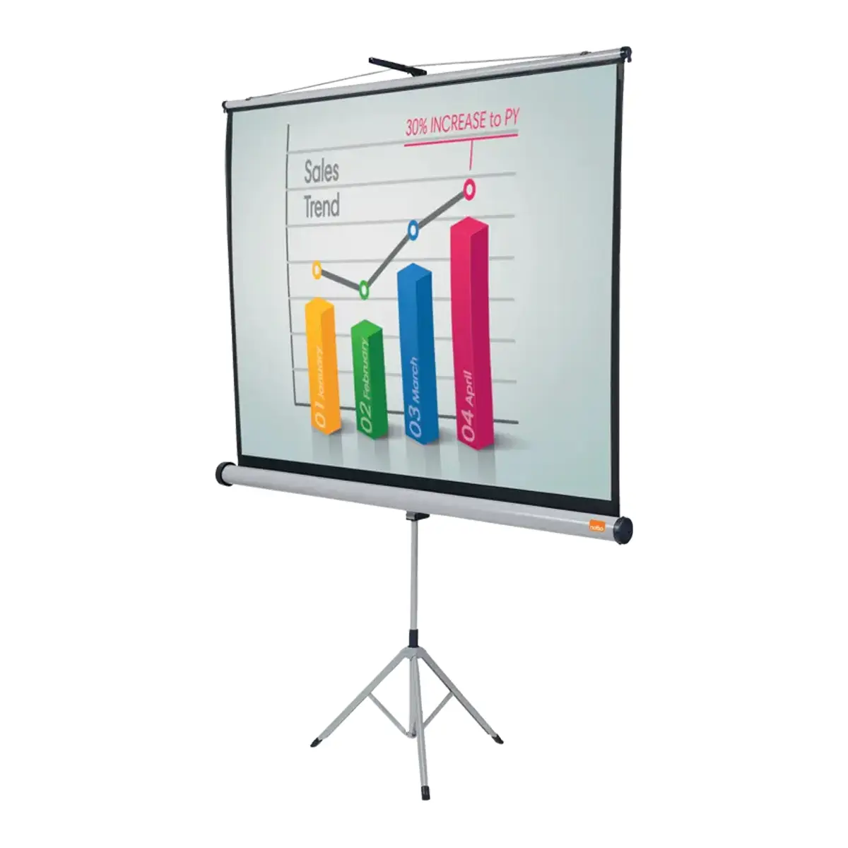 Mejora tus presentaciones y comunícate claramente con el Telón Trípode 4:3 74” (150 x 114 cm) de NOBO. Con este telón para proyectores podrá desarrollar su presentación en el espacio que usted desee. Cuenta con un tripode metálico fácil de transportar y armar. Se adapta en diferentes espacios, tanto como sala de clases, salón de conferencias, de reunión o para crear una sala de cine en el hogar. Cuenta con una pantalla de proyección flexible con trípode. La superficie blanca mate con borde negro de la pantalla reproduce imágenes con gran nitidez, visibles desde cualquier punto. Además, puede enrollarse fácilmente dentro del armazón para mayor protección.Se puede montar en una pared o techo.
